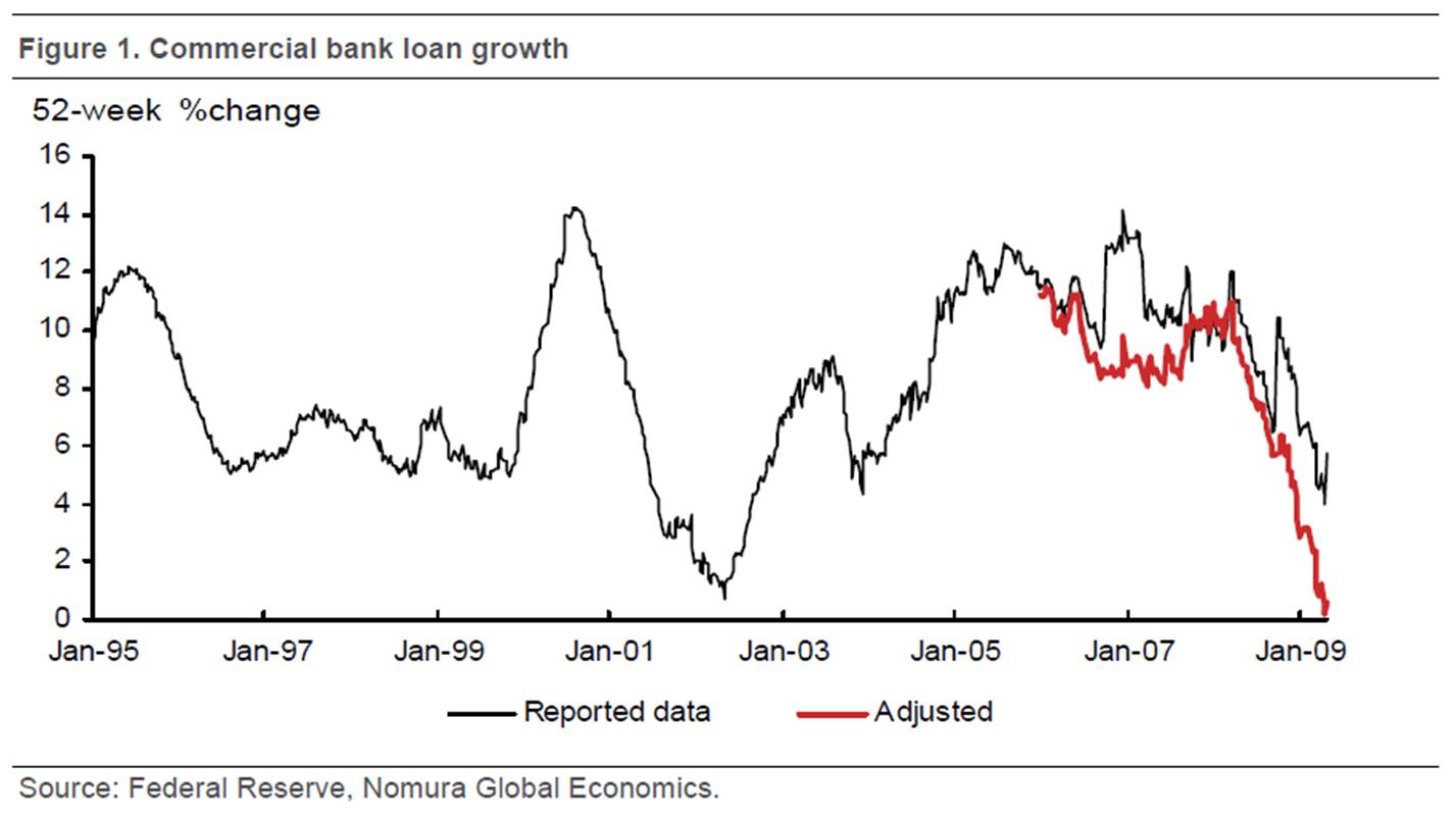 Nomura did a more sophisticated analysis of bank lending trends (hat tip James Hamilton), and here is their key chart: