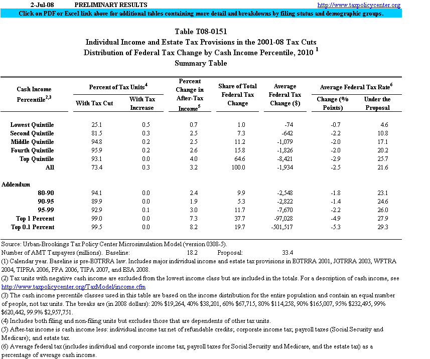 But in my opinion, the preliminary step to getting rich (and reasonably comfortable) people to pay for a better social safety net is to let the Bush tax cuts expire, as I argue in the column. Most importantly, it’s the only inequality-reducing policy I can think of that has any chance of happening in the next year—simply because it only requires doing nothing. How much would it reduce inequality? That’s just the reverse of what the tax cuts did in the first place. (If you can’t read the table, click on it for a larger version.)